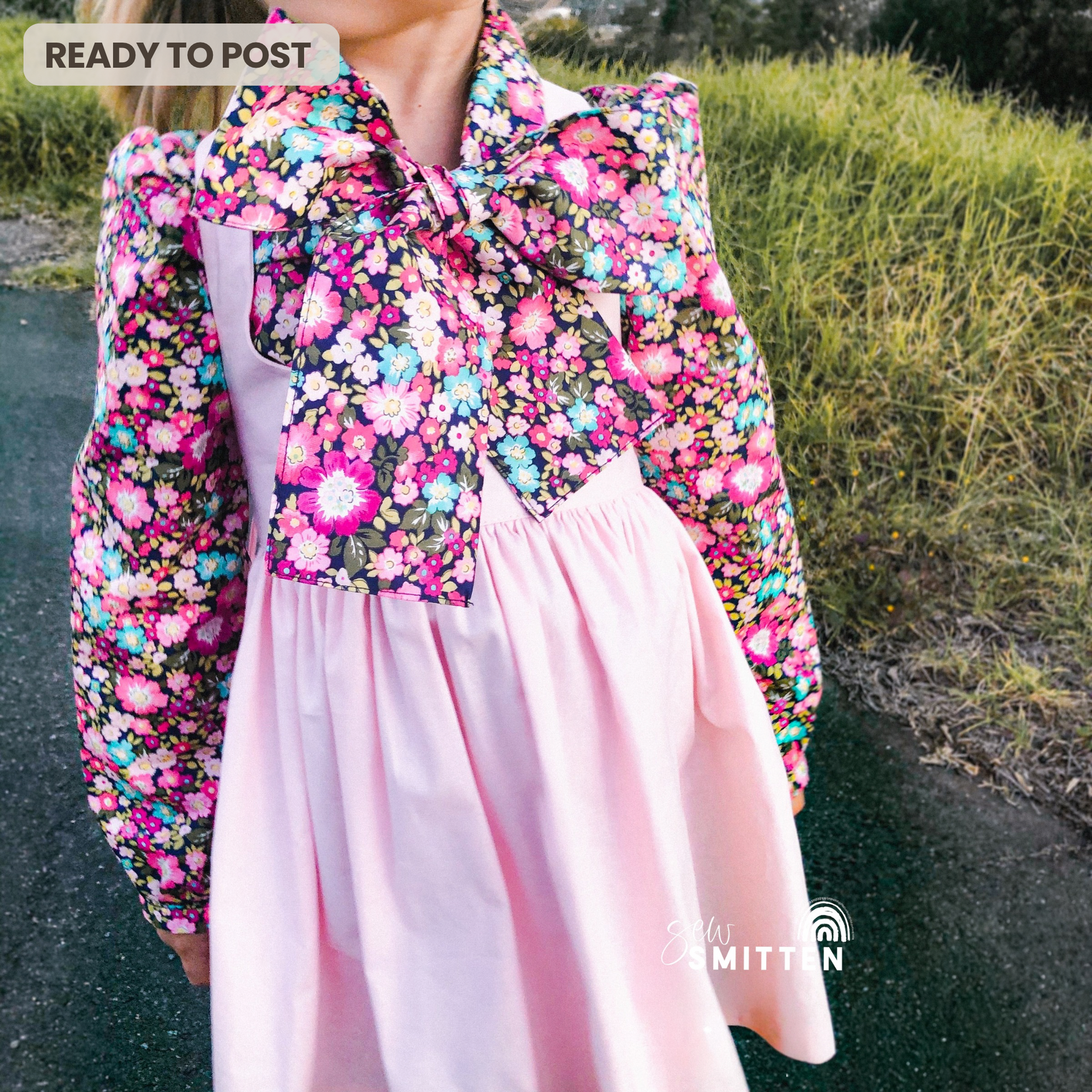 This OOAK Magnolia Blouse is a made from a beautiful floral and features a neck tie collar, full length cuffed sleeves and a button up front with our signature faux timber buttons. She is perfect worn on her own, with a skirt or jeans, or layered under a pinny, as shown with our Blush Pinny Skirt!